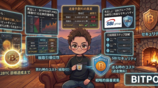 ビットコイン投資を始めるなら「送金手数料」も無料のBITPOINT(ビットポイント)がおすすめ!SBIグループの安心感に加え、板取引(PRO)で無駄なコストを極限まで抑える口座開設のやり方とBTCの買い方を、スマホ画面の画像付きで徹底解説します。