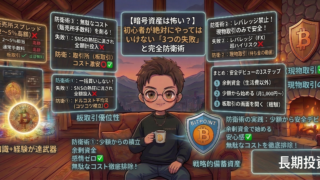 「NISAの次に暗号資産を始めたいけど怖い…」と悩む初心者必見!実は暗号資産自体が危ないのではなく「買い方」に罠があるだけです。本記事では、初心者が大損しがちな「3つの失敗(高値掴み・レバレッジ・手数料)」と、それを避ける安全な投資ルールを分かりやすく解説します。